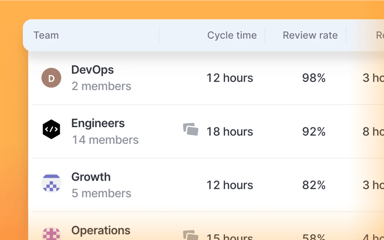 The new organization-level code insights allow you to see key engineering metrics across multiple teams, including cycle time, review rate, review time, throughput, and more.