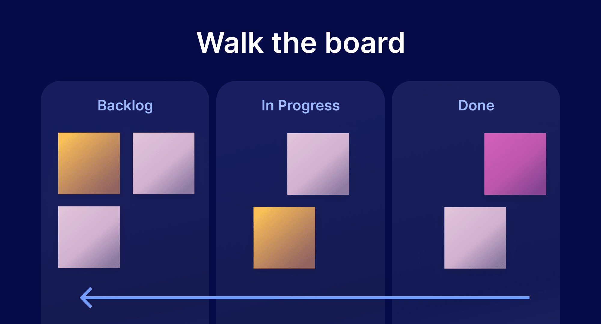 This is especially beneficial if some of your team members are spending too much time on personal pet projects or fine-tuning trivial details. Walking the board helps the team focus on their goals. If the work isn’t visible on the board, it doesn’t deserve the team’s time or attention. And if the work is important and aligned with the team’s goal, it should be added to the board.