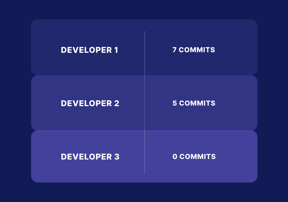 And what if one developer has 7 commits and the other has 5. Is one of them 40% more valuable? Clearly not — commits highly reflect your personal scoping preference.