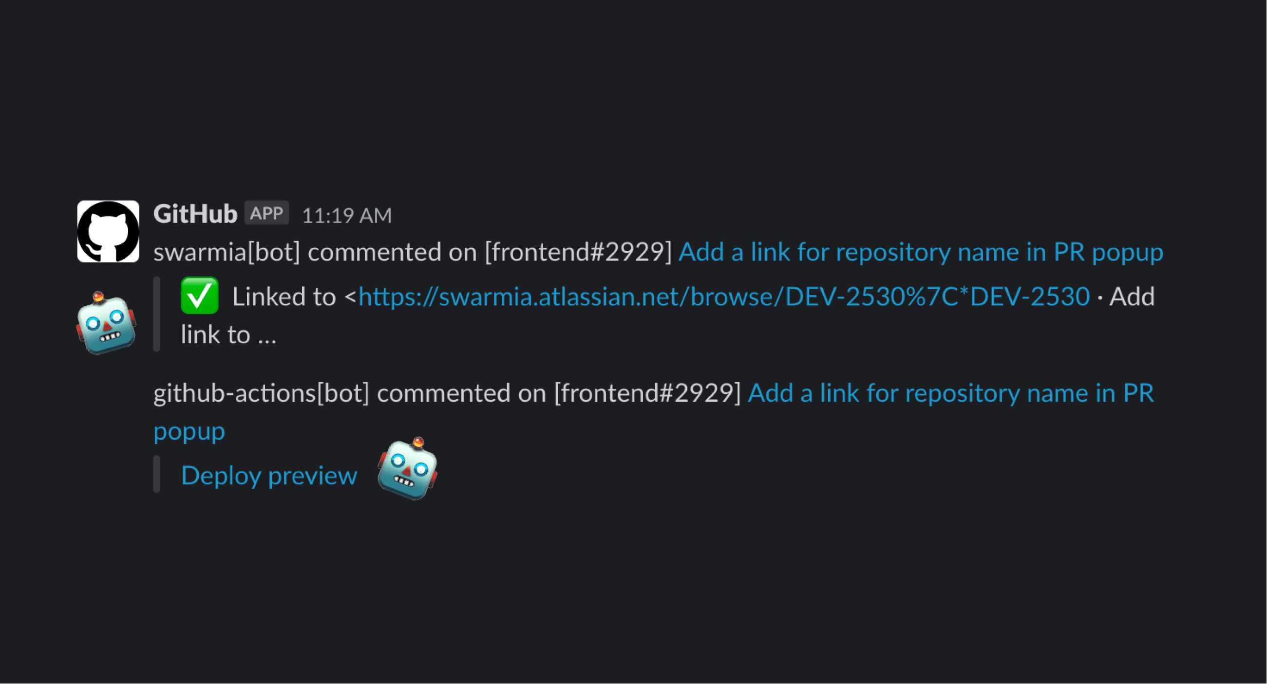 Note how the Swarmia notification: