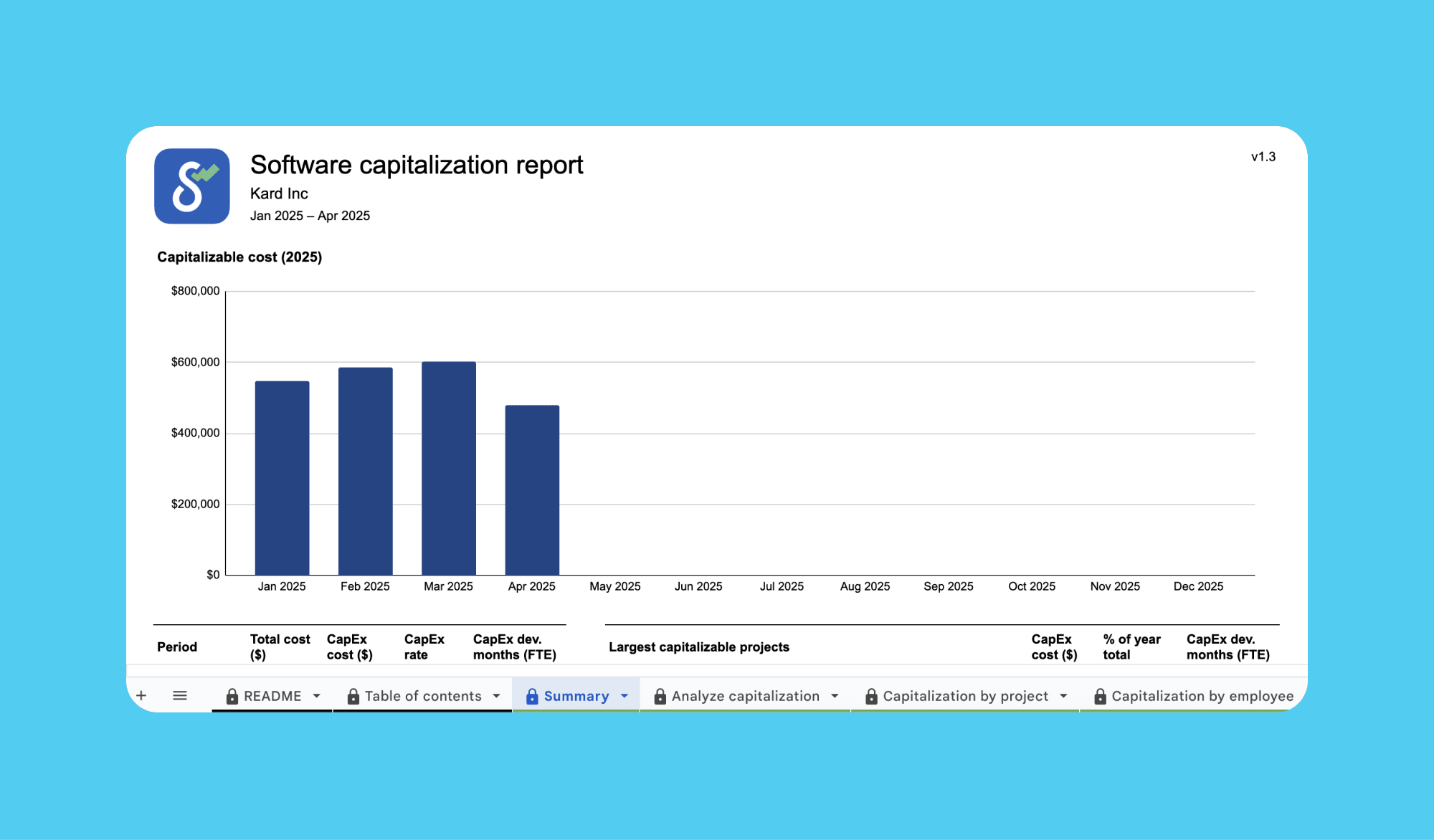 While this model is designed to support software capitalization, its benefits go beyond finance. It gives you a clear view of where your engineering time is going, which is helpful for planning, resourcing, and spotting potential imbalances in project focus.