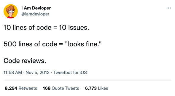 If you’ve reviewed large PRs, you’ve probably experienced code review fatigue. Keeping all the context of a large pull request in your head is very consuming — especially if the pull request includes multiple separate changes. The result is that the reviewer starts skimming code, leaves fewer comments, and ends up with a superficial “LGTM” review.