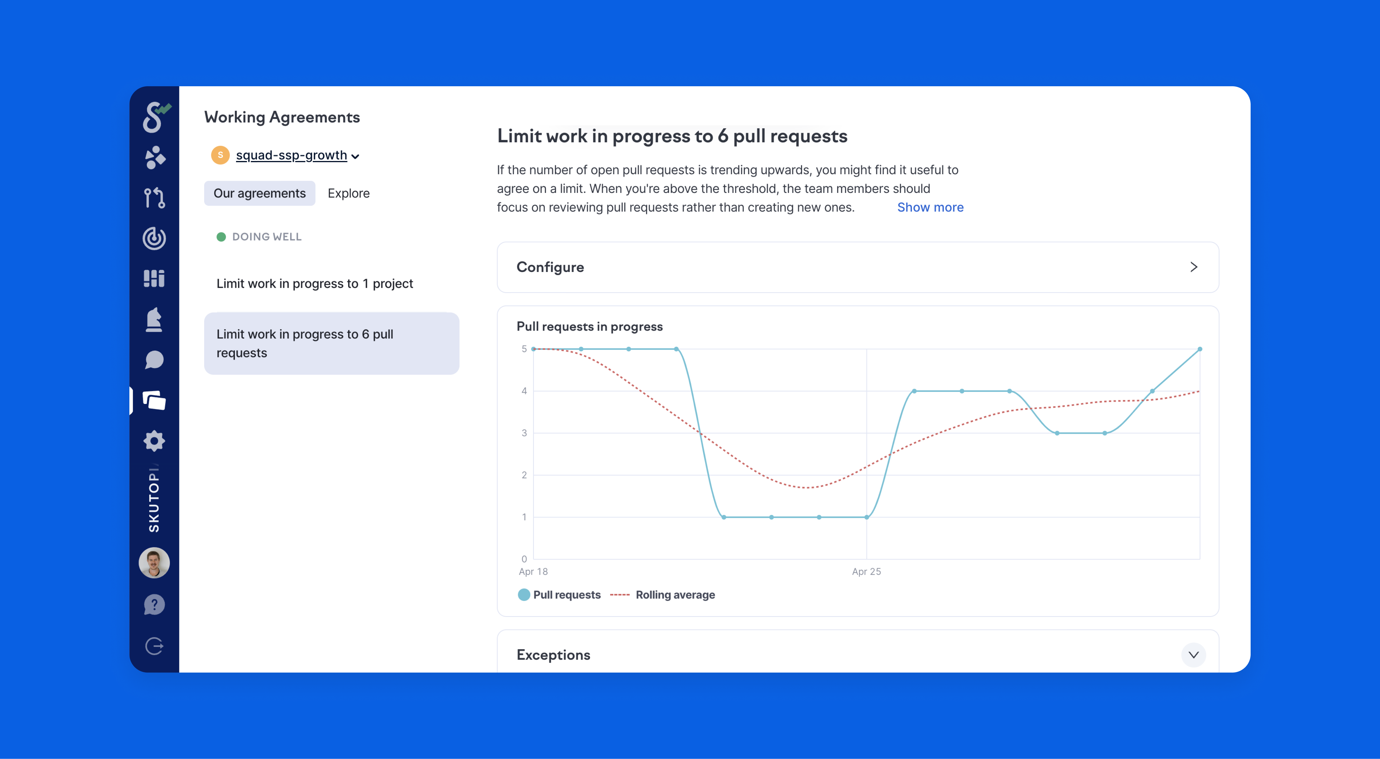 Since adopting the working agreement to limit the number of open pull requests, the team hasn’t gone over the limit once. They’re now able to focus on finishing the work they’ve started, rather than trying to multitask.