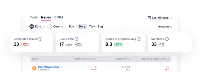 No. One of our product principles is that every software team is different. In practice, this means that Swarmia works for your engineering teams as well as the whole organization, no matter how they’ve decided to use Jira.
