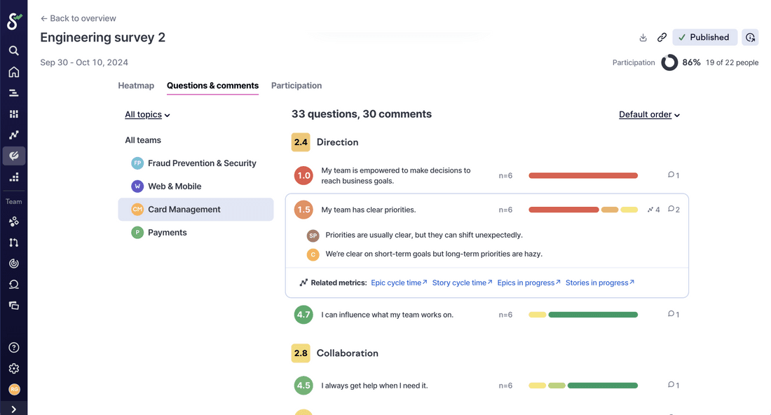 We’re asking a lot of our engineers: tight timelines, rapid scaling, constant delivery pressure. Developer experience surveys help us understand if we’re pushing too hard in certain areas or if there are systemic issues slowing people down that we can actually fix.