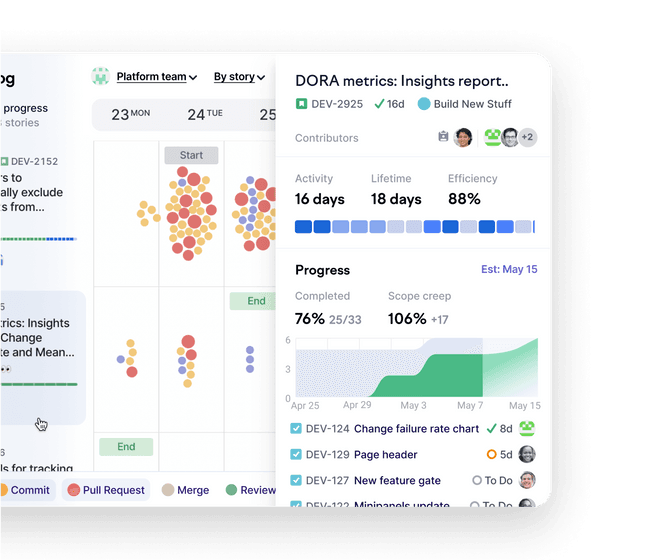 Work log brings together data from all the tools where engineering work happens. Get a full picture of work in progress and regain focus on what matters.