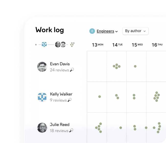 Quickly see how work is distributed between team members. Spot opportunities to increase collaboration on certain types of work or split code reviews more evenly.